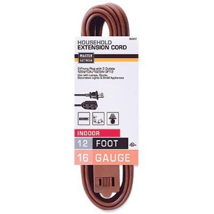 MASTER ELECTRICIAN Indoor Household Cube Extension Cord with Power Tap 2-Prong 3-Outlets 16/2 Gauge Brown 12FT