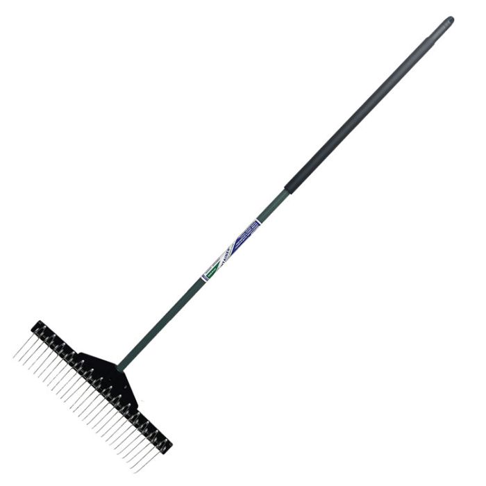 21", Multi-Purpose Lawn Rake, 28 Steel Tines, Each Independently Spring Loaded, Self Cleaning, Replaceable Tine Design, Fiberglass Handle.