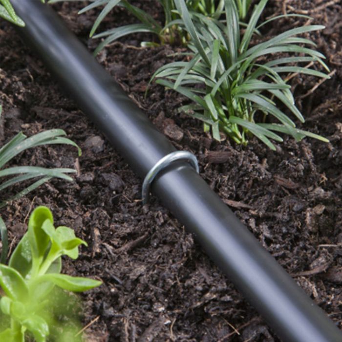 Holds 1/4" tubing in place next to plants. 3.5” long; 11-gauge steel.