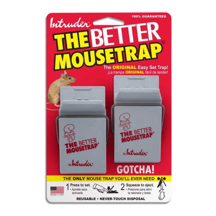 The Better Mousetrap is the first sanitary and user-friendly mouse trap of its kind. Designed to cleanly suffocate mice means no exposure to blood, mess or bodily fluids. Holds the mouse tightly with 30% more force than most other traps. Sensitive triggering ensures a successful kill with no more sprung traps and stolen bait. Original sanitary and user-friendly trap. Holds mouse tight with 30% more force than most other traps. Cleanly kills by suffocation, no exposure to blood, mess or bodily fluids. Sensitive triggering ensures a successful kill with no more sprung traps and stolen bait. Child and pet safe. Environmentally friendly-reusable. 100% Guarantee.