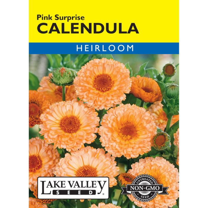 Orange-apricot flowers tinged with pink, frilly double flowers bloom from April through October in most areas. Calendulas may bloom less frequently in summer heat, but revive when cool weather returns. A cottage garden favorite with edible flowers. Attracts pollinators.