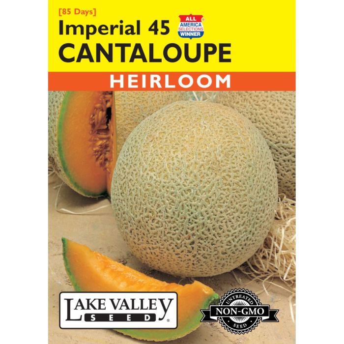 Imperial 45 takes its name from the famous valley in California where it was developed especially for home and market gardeners. Melons maintain their juicy, sweet flavor well after harvest. Keeps well. It won an All America Selections award in 1935.