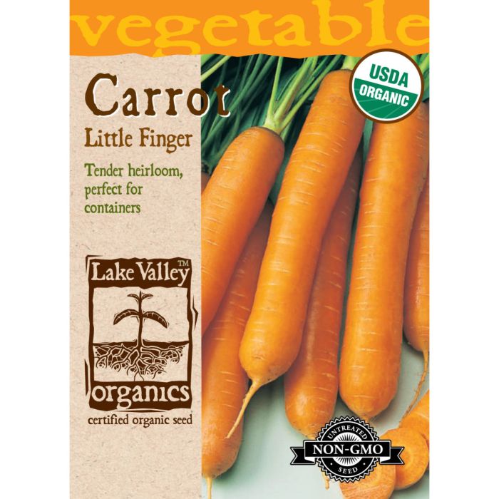 Little Finger carrots can be pulled at 3″ long. Deep orange, blunt roots have a very small core and smooth skin. These miniature carrots are often served in gourmet restaurants. Their sweet flavor develops early. Great fresh and perfect for pickling and canning.