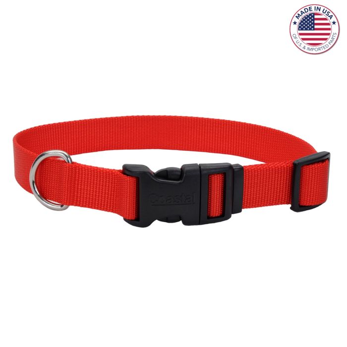 Coastal® Adjustable Dog Collar with Plastic Buckle, Red