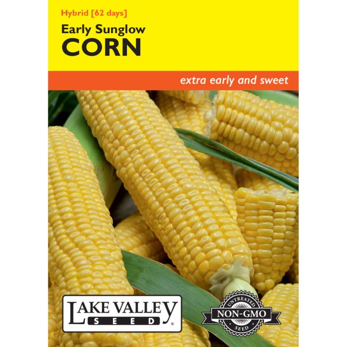 A very early and reliable producer. Each stalk is about 5′ tall and bears several 6-7″ ears packed with plump yellow kernels. Early Sunglow will be the first sweet corn on your summer table.