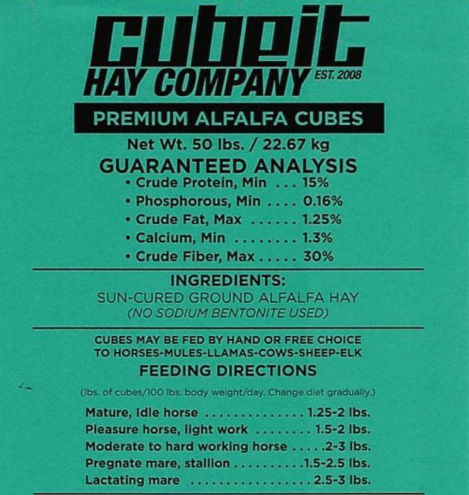 (lbs. of cubes/100lbs. body weight/day. Change diet Gradually)