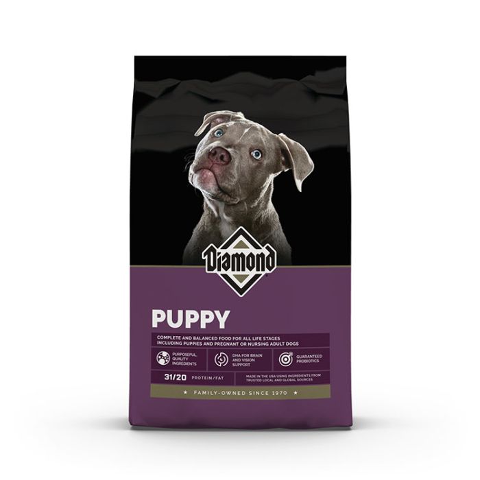 The nutrition a puppy receives in the first year can influence overall health later in life. Diamond Puppy is precisely formulated to meet the special nutritional needs of rapidly growing puppies. Enhanced with DHA for proper brain and vision development, this recipe includes omega fatty acids, antioxidants and proper levels of protein and fat, to help puppies grow up strong. Diamond Puppy is also suitable for pregnant or nursing adult dogs.