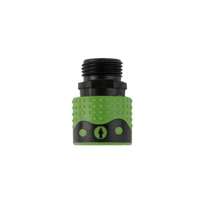 Attaches to hose for a quick, easy connection to a faucet. Features durable, rustproof polymer construction. Interchangeable with most polymer quick connector systems. Attaches to hose for a quick, easy connection to a faucet. Durable, rustproof polymer construction. Interchangeable with most polymer quick connector systems.