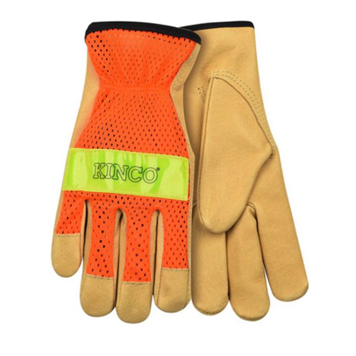 KINCO® Mesh & Grain Pigskin Palm Gloves Hi-Vis Orange