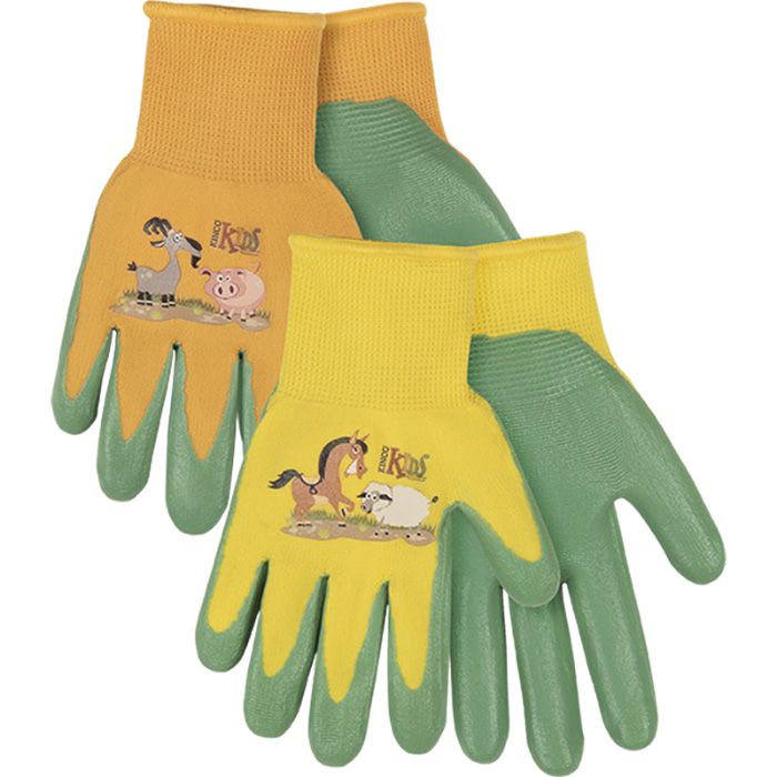 KINCO® Nylon Knit Shell & Foam Nitrile Palm Gloves FARM FRIENDS™ Kid-Sized, 1 pair