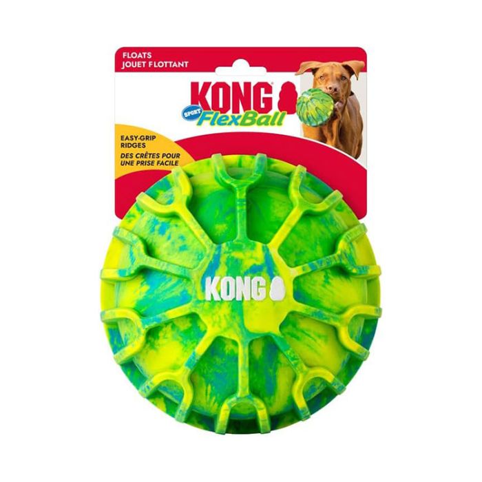 The KONG FlexBall offers dynamic bounce for fetching fun, made from durable, firm yet cushiony material. Deep ridges ensure an easy grip for hands or teeth. Its ideal weight makes it perfect for long outdoor play sessionsāit even floats in water!