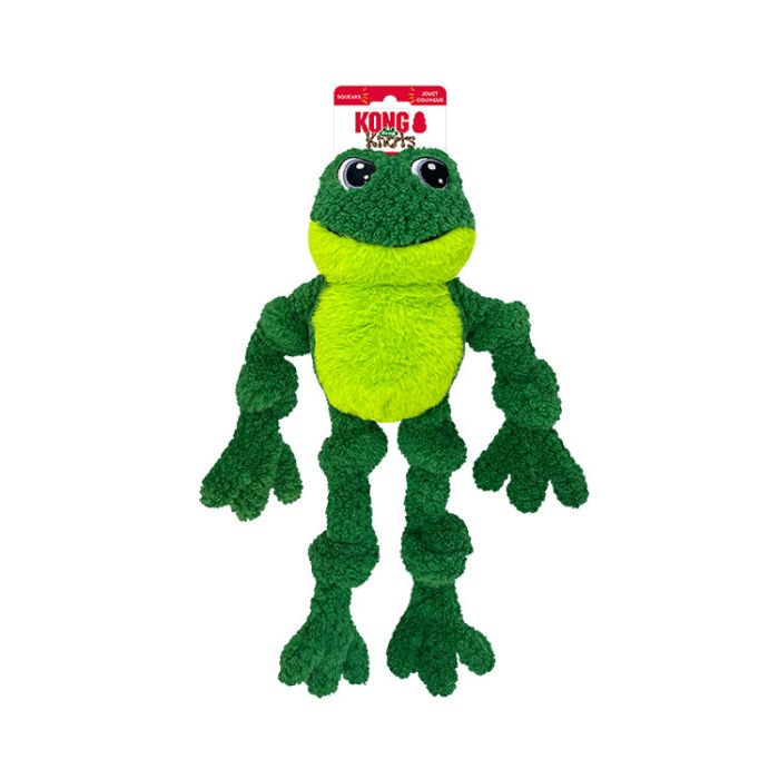 KONG Knots Frog’s oversized, floppy body invites tugging, thrashing, and gnawing to playtime, while its soft dual-plush material is perfect for carrying and snuggling. The inner rope skeleton provides durability, and a squeaker in the head entices extended play sessions.