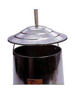 Hanging feeders save floor space, reduce waste by eliminating scratching, and cut down on debris in the feed. Constructed of heavy-gauge galvanized steel for many years of service, with rolled edges for safety. Hanging handle included. Tube is 10.75 inch diameter by 13.875 inch high; pan is 14.25 inch diameter by 2.25 inch high. Holds approximately 30 pounds of feed. Galvanized steel cover is available for this feeder (Item No. 9144, sold separately).