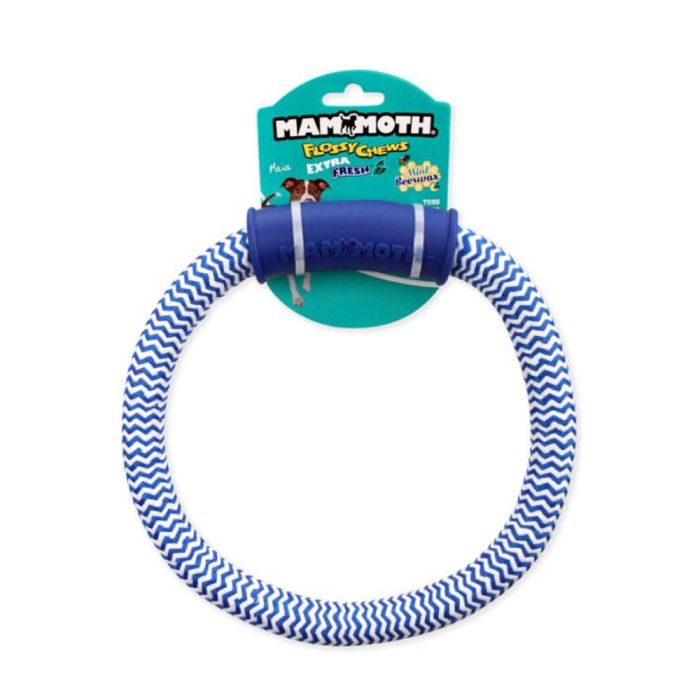 WINTER FRESH Dental Ring w/Handle. Mammoth Flossy Chews EXTRA FRESH are made with mint and natural beeswax floss to help freshen breath and control tartar while pets enjoy hours of interactive playtime. Perfect for maintaining good dental hygiene while playing, tossing, and tugging. Toss. Tug. Floss. Great for small to medium size dogs.
