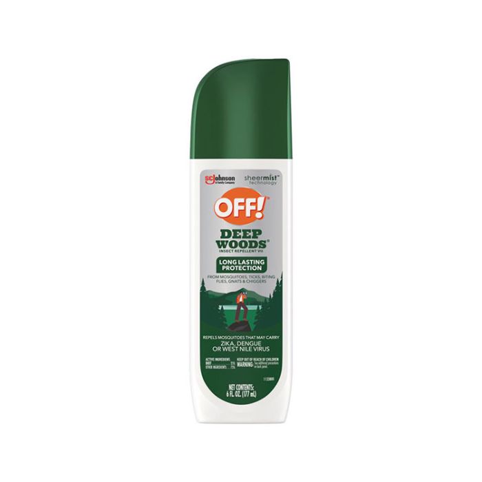 OFF! Deep Woods Insect Repellent VII is a pump mosquito spray that allows for easy application to skin and clothing. Armed with Sheermist Technology, this outdoor insect repellent is ideal for camping, fishing, hiking and hunting, so you can keep living life your way. * * Formulated with 25% DEET, this bug repellent provides long-lasting protection against mosquitoes that may carry the Zika, Dengue, or West Nile viruses. It also repels ticks, mosquitoes, biting flies, chiggers, and gnats. Keep out of reach of children and pets. See the label for other precautions and usage directions.