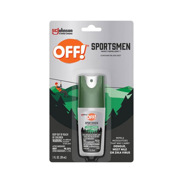 OFF! Sportsmen Deep Woods Insect Repellent I is a maximum strength bug repellent spray for outdoor enthusiasts offering up to 10 hours of long-lasting protection against mosquitoes. It repels mosquitoes including those that may carry the Zika, Dengue, or West Nile viruses. This tick spray also protects against chiggers, fleas, stable flies, black flies, gnats, biting flies, and sand flies. * The mini pump spray mechanism allows for easy application to skin, hair and clothing.