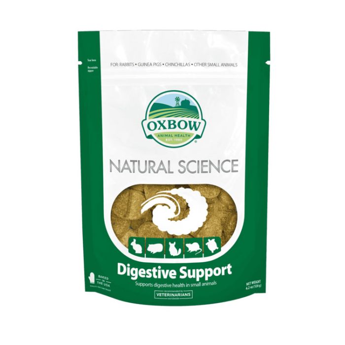 High fiber support for your pet’s digestive tract. Natural Science Digestive Support contains high fiber Timothy hay and various herbal ingredients to support the digestive health of rabbits, guinea pigs, chinchillas, rats, and other small pets. Chicory root supports the growth of beneficial bacteria in the GI tract while Ginger Root supports gastric motility.