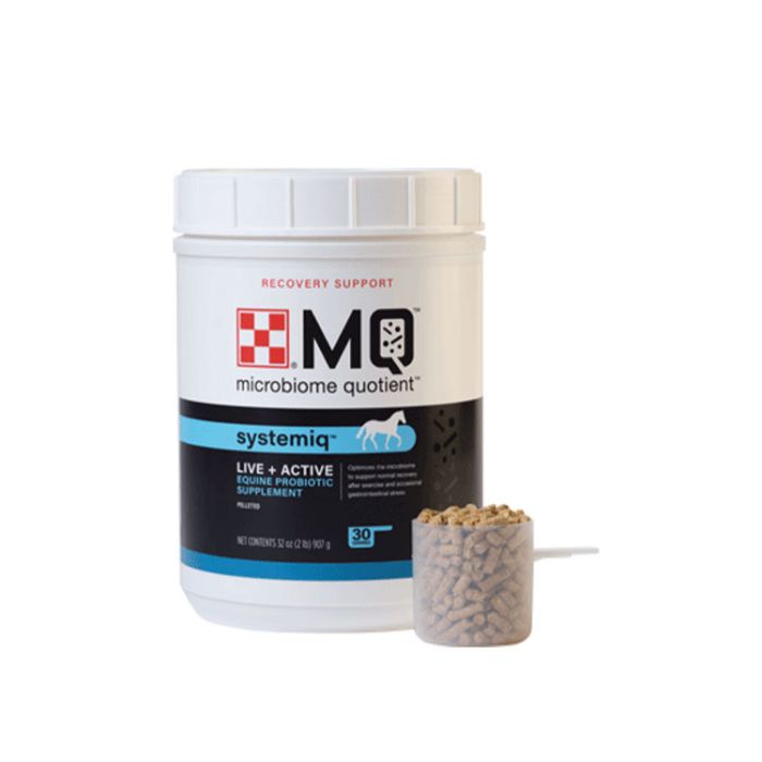 It has a systemic effect in your horse, helping him to overcome challenges such as exercise or occasional gastrointestinal stress. It is one more piece of the puzzle to help protect horses with sensitive systems and elite athletes alike. Systemiq® probiotic supplement provides proven benefits backed by science, all part of the Purina® MQ® platform.