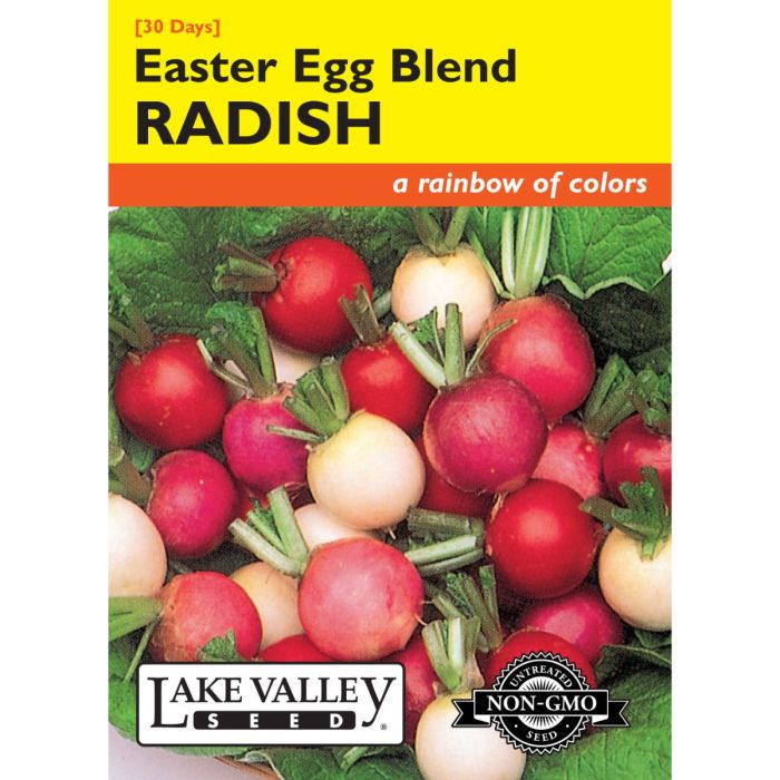 Easter Egg is a delightful mixture of white, red and purple radishes. This quality mix is one of our favorites because the radishes remain crispy and mild flavored over a long harvest period. Easy to grow.
