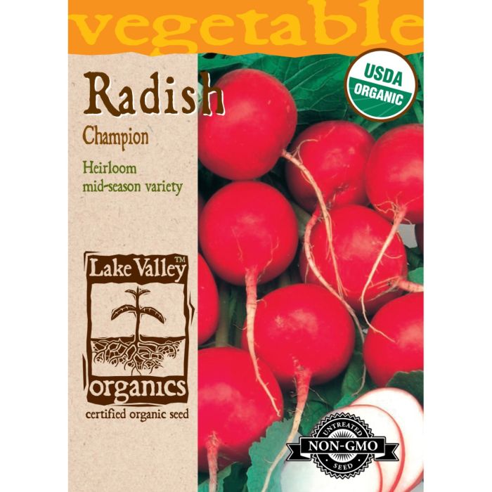 Bright red round roots with crisp white flesh. A vigorous mid-season variety that develops quickly and is slow to become woody. Grow extra-early and late plantings for tasty radishes all season. It won an All America Selections award in 1957.