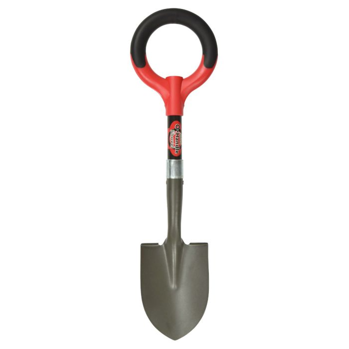 Powder-coated mid carbon steel blade round head shovel with pultruded fiberglass shaft and Ergonomic O-handle, Red.