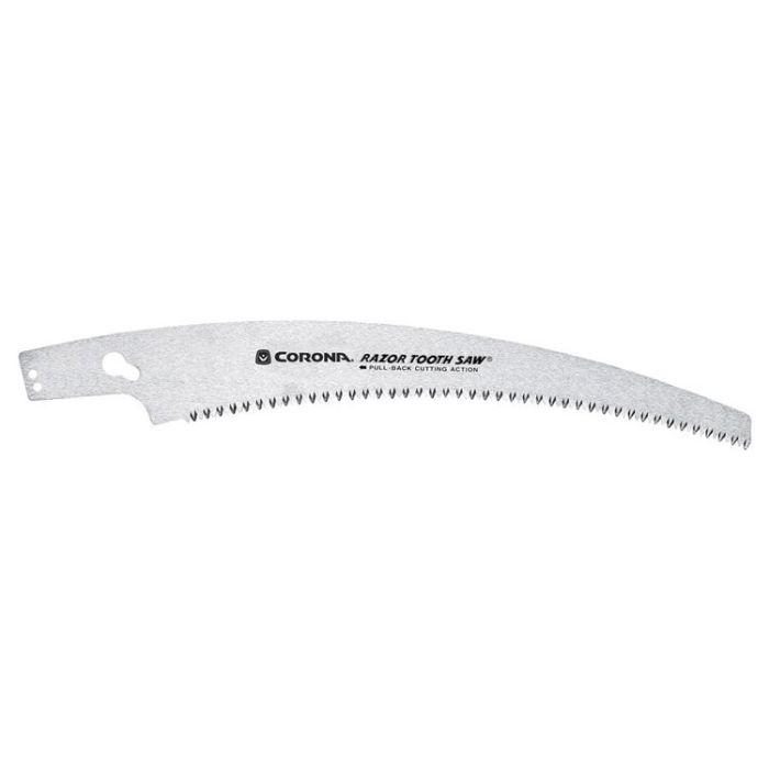 The Corona Clipper razor tooth 13 inch replacement tree pruner saw blade for Corona models TP 6870, TP 6850, TP 6830 and AC 9000. The razor tooth design cuts twice as fast as conventional saw blades as it cuts on the pull and push strokes. The blades are cut on three sides for quick cutting through limbs, branches and other landscape items. Made with high quality material. 3-sided, impulse-hardened teeth stay sharper longer. Easy to use.