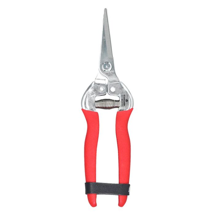Harvest flowers, fruits, vegetables and more with the care and precision of the Corona Long Straight Snip. These gardening scissors feature 1 ¾-inch long, straight-edge blades with a fine pointed tip designed for a wide range of gardening applications. Made with corrosion-resistant stainless steel, the blades and pivot are easy to clean and resist germ and residue build-up, helping reduce cross-contamination between plants and seedlings. Its lightweight, comfortable grips have an unobtrusive leather strap lock for safe and easy storage. Thanks to the long and narrow design, these trimming scissors are ideal for snipping small stems or buds in tight spaces with accuracy and ease.