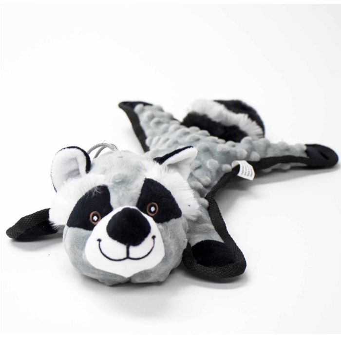 Tennis ball head, rope in body, squeaker, crinkle paws and heavy duty seams for extra roughness!