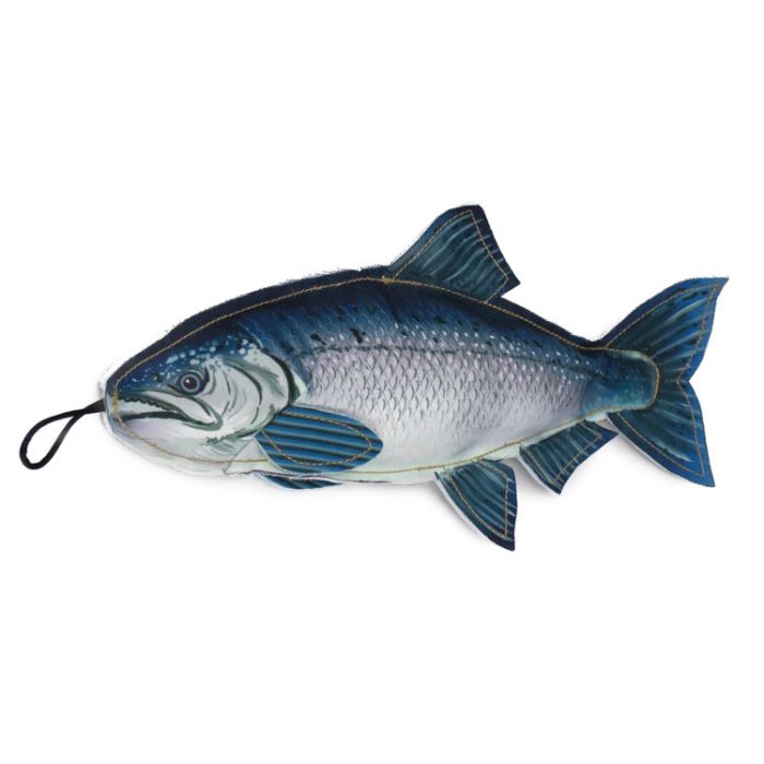 Realistic design on denim with rope toy inside with a squeaker, no stuffing.