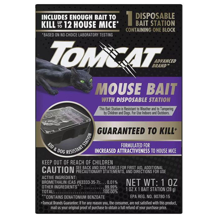 - Tomcat Advanced Brandâ„¢ Mouse Bait with Disposable Station kills mice with bait that is formulated for increased attractiveness to house mice