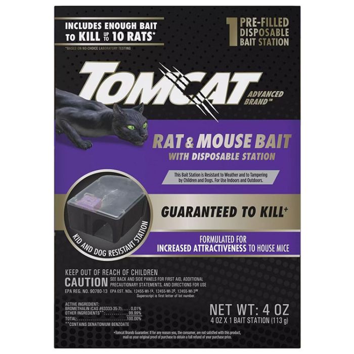 - This package of Tomcat Advanced Brandâ„¢ Rat & Mouse Bait with Disposable Station includes 1 pre-filled, ready-to-use bait station containing 1 block