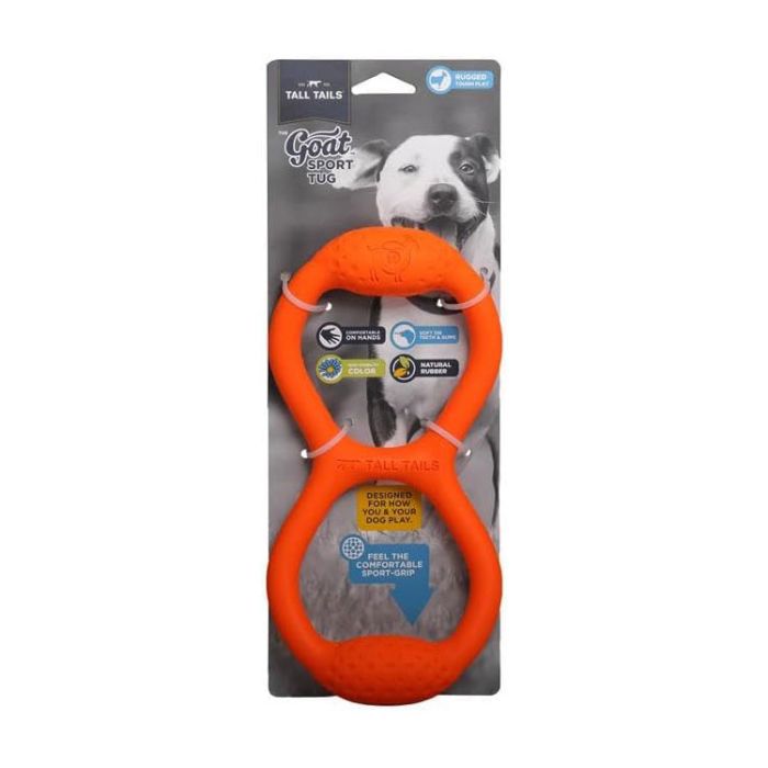 Playing tug with your dog is the purest form of interactive play, making rope dog toys the greatest of all toys for dogs. With that in mind, we at Tall Tails came up with the GOAT Natural Rubber Tug Dog Toy. A natural rubber tug toy for dogs, this toy is designed for many rounds of games of tug, pull, and interactive play. Its design features comfortable sure-grip handles that also act as rugged soft-bite areas for your dog during tug play. A shock-absorbing center bar provides more control and knuckle protection, making the GOAT Sport Tug Dog toy the ideal for dogs who love to tug and pull.
