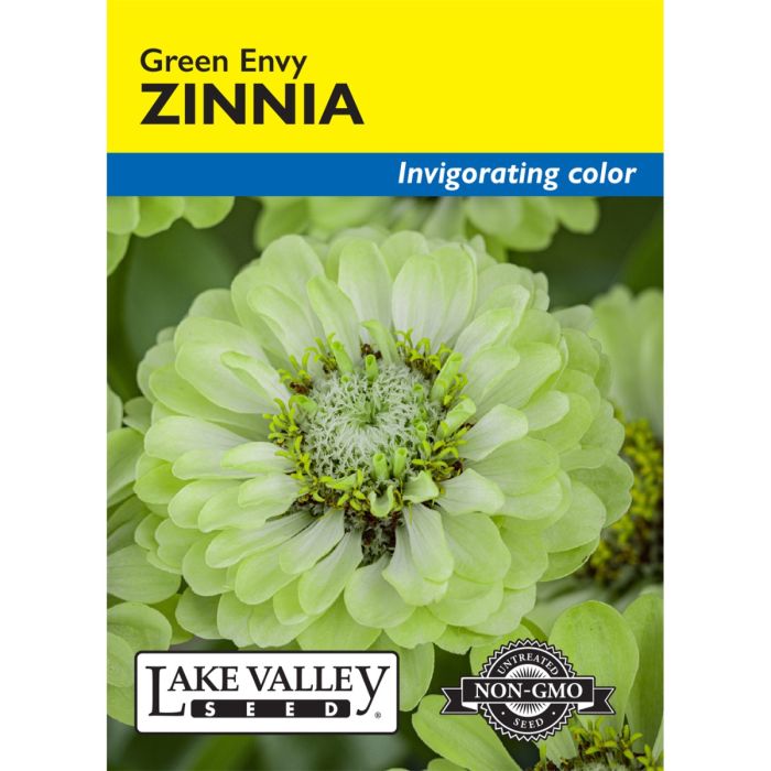 Green Envy Zinnias make a great accent to your garden with their vivid chartreuse hue, as well as a stunning cut flower with an impressive vase life. 4″ double blossoms pair well with a wide range of colors from bright to pastel and are easy to grow. This fast-growing and long-blooming species is excellent for pollinators, borders, and mass plantings.